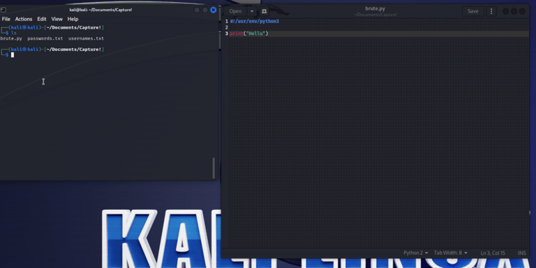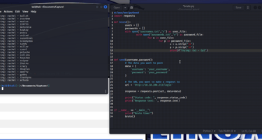 Prepare your scripting environment and test that it works (use the same folder as the wordlists). I verify its functionality with a simple print statement to ensure everything is working as expected. Normally, I would use a robust IDE like PyCharm or VS Code on Windows. However, feeling a bit lazy today, I chose to do everything in gedit.