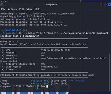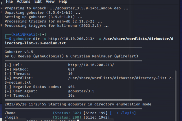 gobuster dir -u http://10.10.xx.xx/ -w /usr/share/wordlist/dirbuster/directory-list-2.3-medium.txt