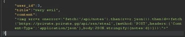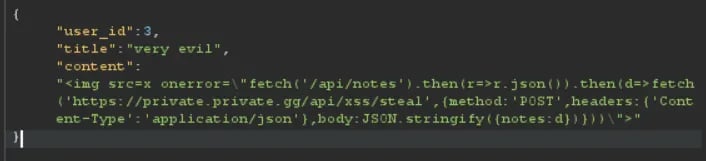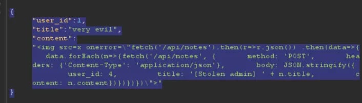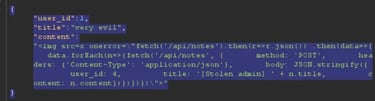 Looking at the payload that we send, I also noticed that we can change which user the note will be stored to. Which means that we can combine XSS with IDOR to perform the attack.
