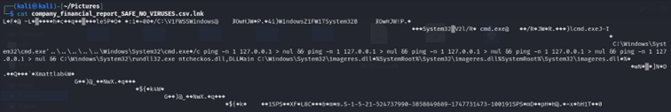 When I concatenate the “.lnk” file, it is clear that this csv is running something much more exciting than a financial report.