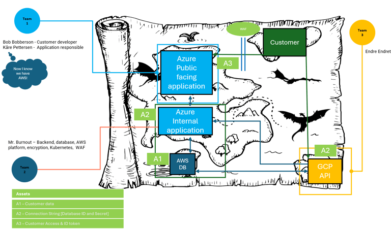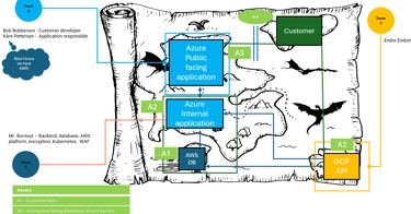 Assets is anything that is of value to the company and what can cause harm to the company if stolen, manipulated or encrypted. In a financial organization, it can be stock information, personal information or customer tokens with wide access. It can be authentication tokens to Aure, secrets to a highly privileged user in a platform or a whole database with logs that reveals too much information. It can be a lot and all potential assets that could cause harm to the organization and is used, accessed or revealed in the solution must be documented. If there are too many assets in the model, they can also be prioritized between high, medium and low importance, which will make it easier when mapping risks and security controls to make a prioritization list.