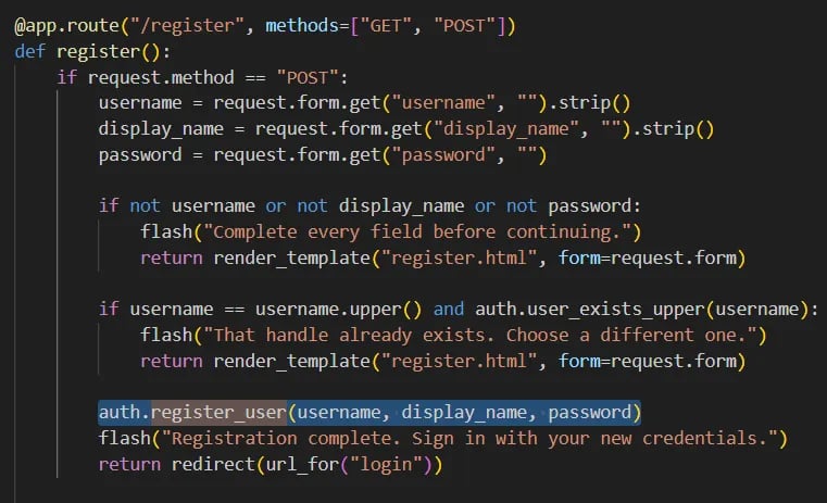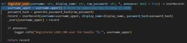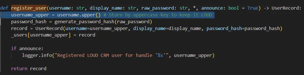 When reading through the code, I see that the username check is done before it converts lower case to capital letters.