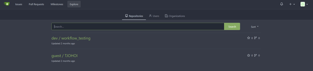 The first thing I did was to explore the Gitea application and understand what I was looking at and looking for. This is my first time trying Gitea, so I did not stress learning the different functions, where things are and how they work. I noticed that there are 2 repositories in this application. Workflow_testing and TJOHOI.