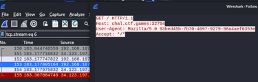 This is great! Now we know how to use this mysterious program, but what does it actually do if we run it? Since it is doing something through the internet (Since we are giving it an address to target), I decide to use Wireshark to analyse the packets it is sending. Wireshark manages to see the packets, and on a close inspection, I see that it is trying to get the address with a specific header…