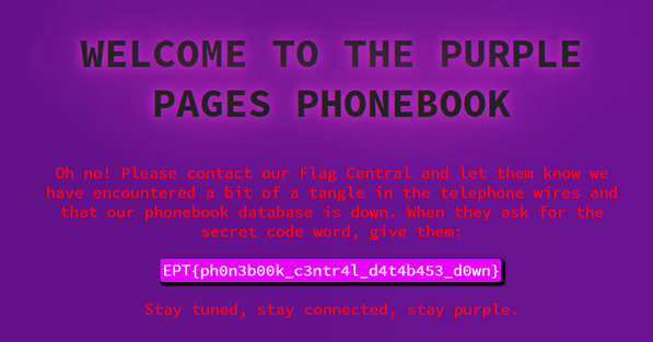 Writeup for EPT CTF- The Purple Pages (I will never get tired of DALLES fantastic way of spelling things...)